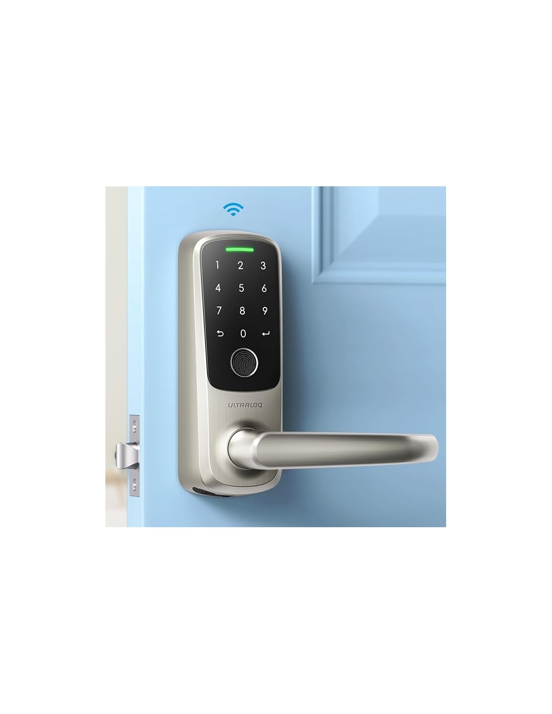 ULTRALOQ Latch 5 Smart Lock - Built-in WiFi Smart Fingerprint Door Lock - Biometric Keyless Entry Door Lock with App - Digital Keypad Door Handle Lock - Smart Locks for Front Door - App Remote Control