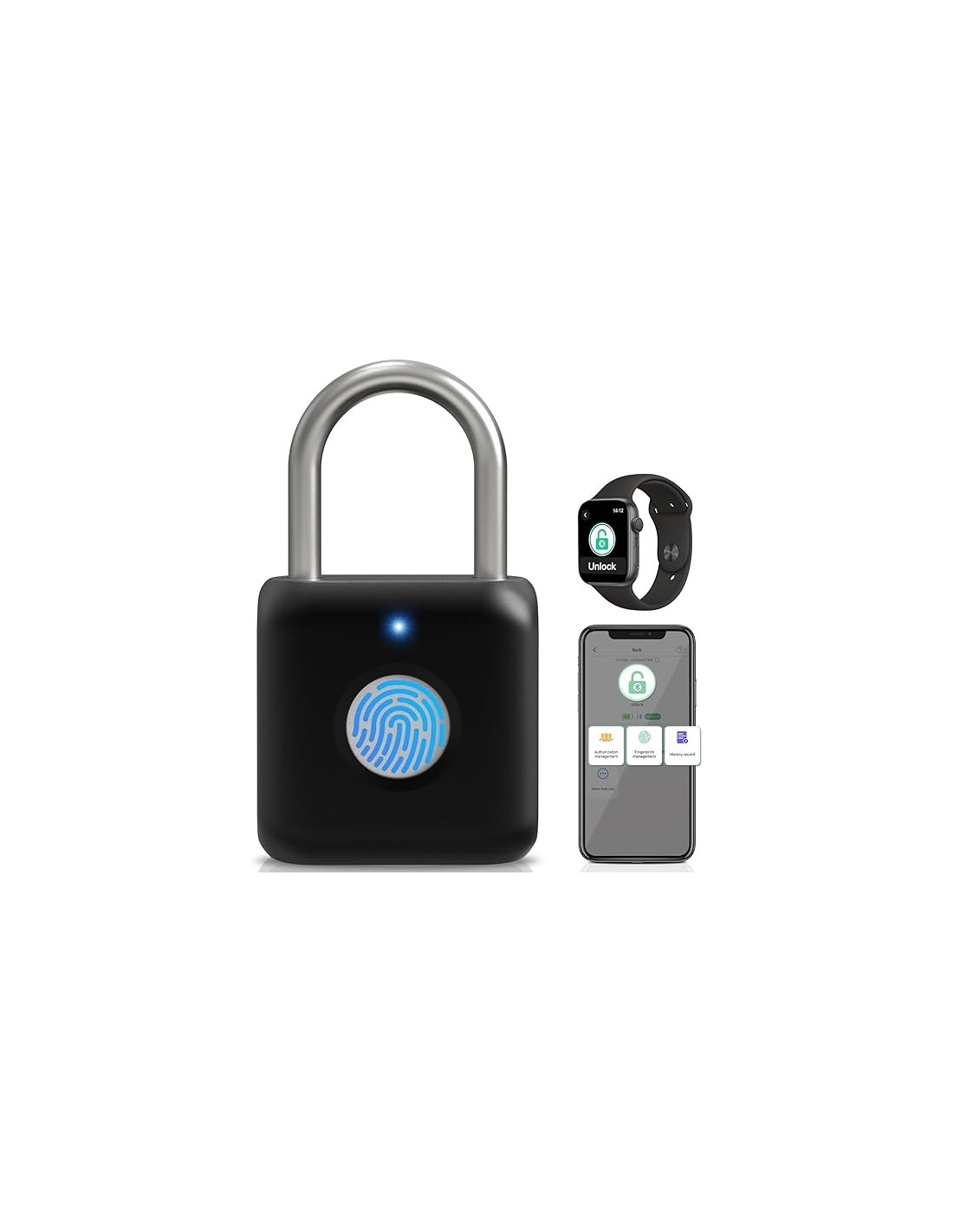 Fingerprint Padlock, Pothunder Smart Padlock, Locker Lock, Combination Lock, Fingerprint Lock with APP Unlock, USB Rechargeable, Suitable for Gym Locker, Door, Locker(Black)